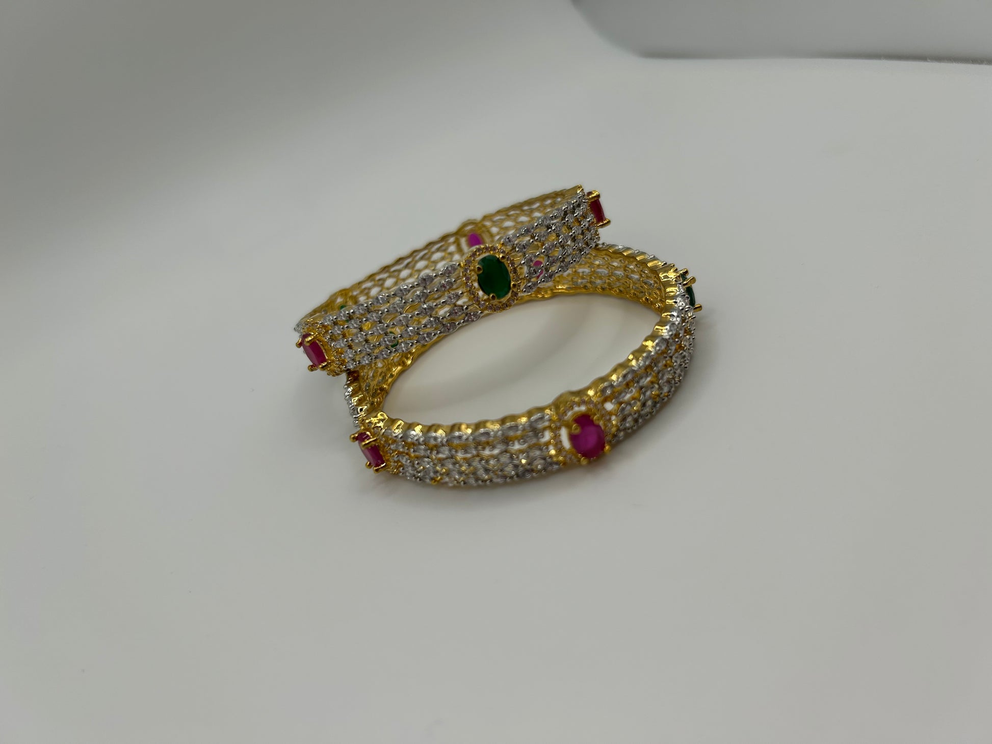 These elegant AD bangles come in two sizes, 2/4 and 2/6, ensuring a perfect fit for any wrist. Add a touch of luxury to any outfit with these beautiful bangles. Perfect for any occasion, these bangles are the ideal accessory for a sophisticated and stylish look.