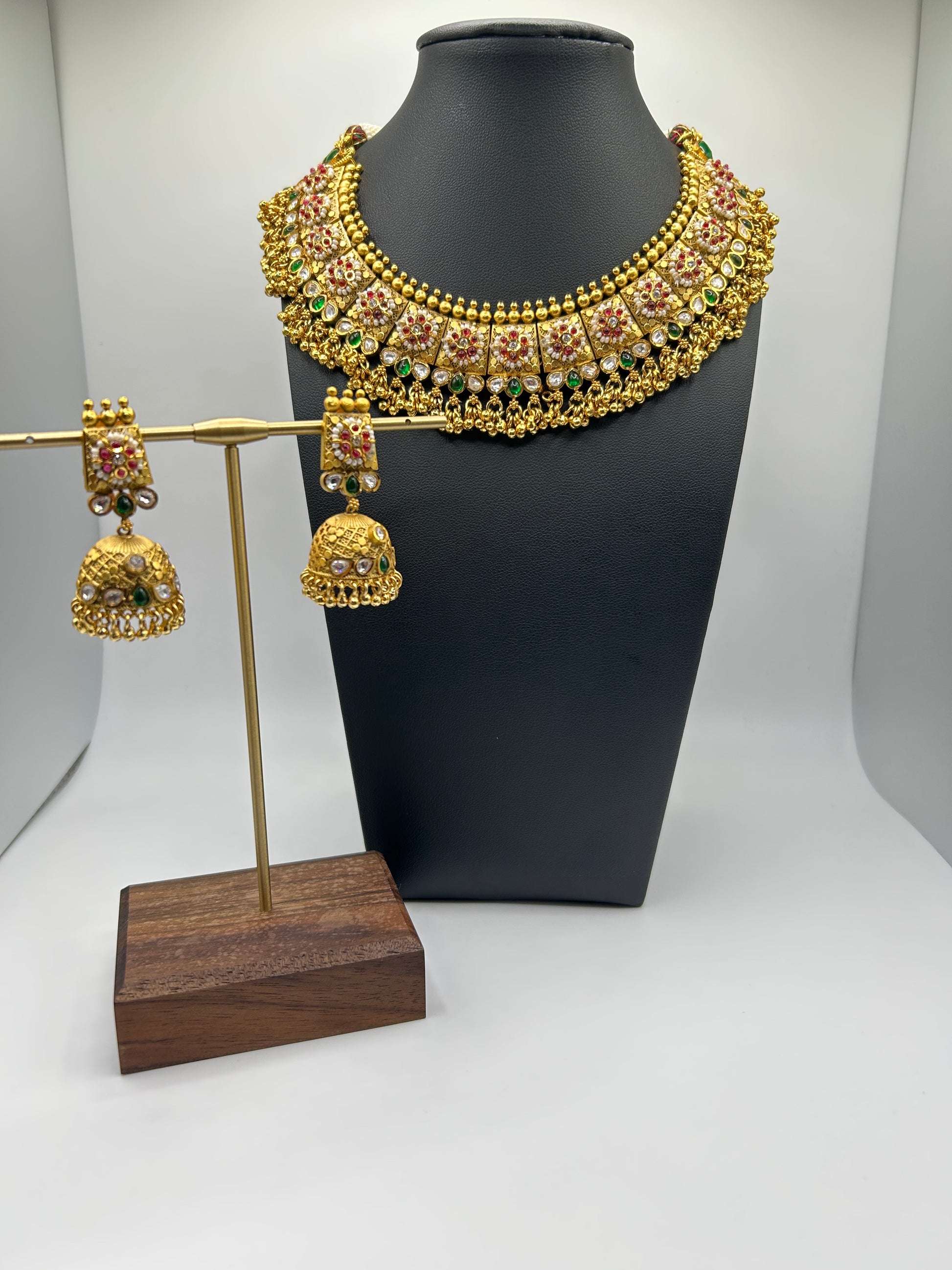 This antique gold plated necklace adds a touch of vintage charm to any outfit. Its unique design and classic look make it the perfect addition to any jewelry collection. Elevate your style with this beautiful piece that is sure to turn heads and become a timeless favorite.