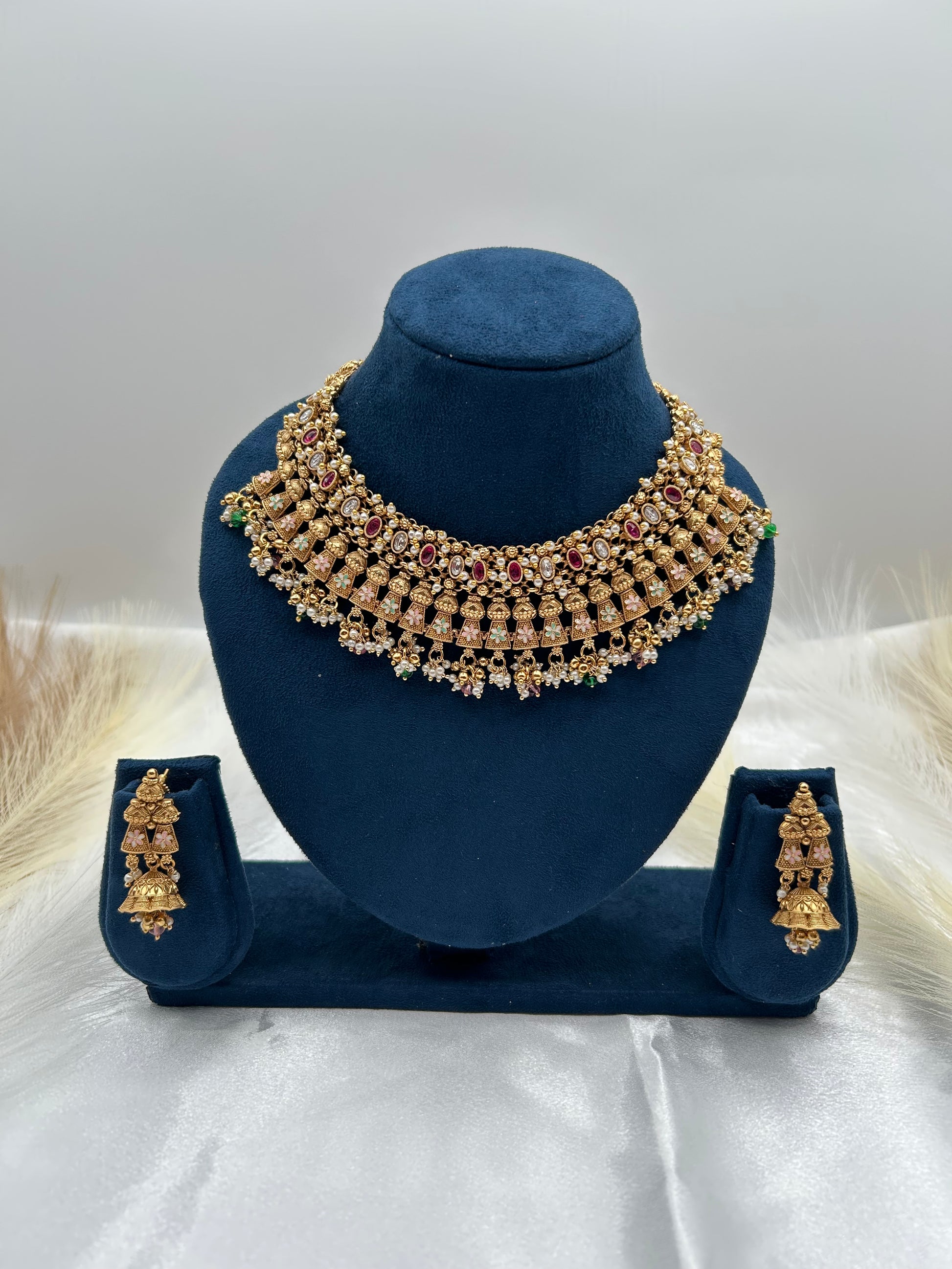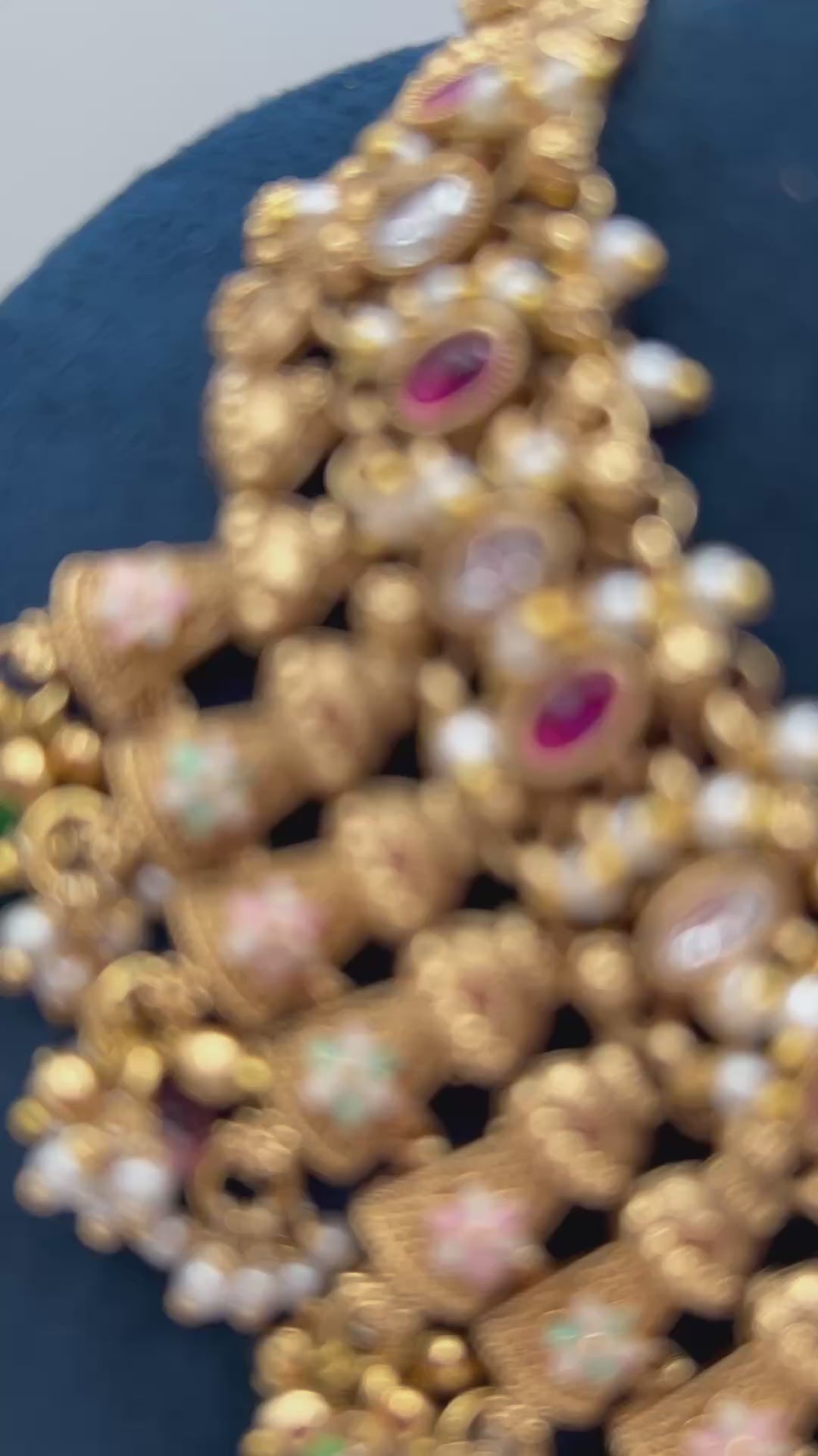 Expertly crafted, this antique gold-plated necklace exudes timeless elegance. Its intricate design and quality materials make it a valuable addition to any jewelry collection. Elevate any outfit with this unique, vintage-inspired piece.