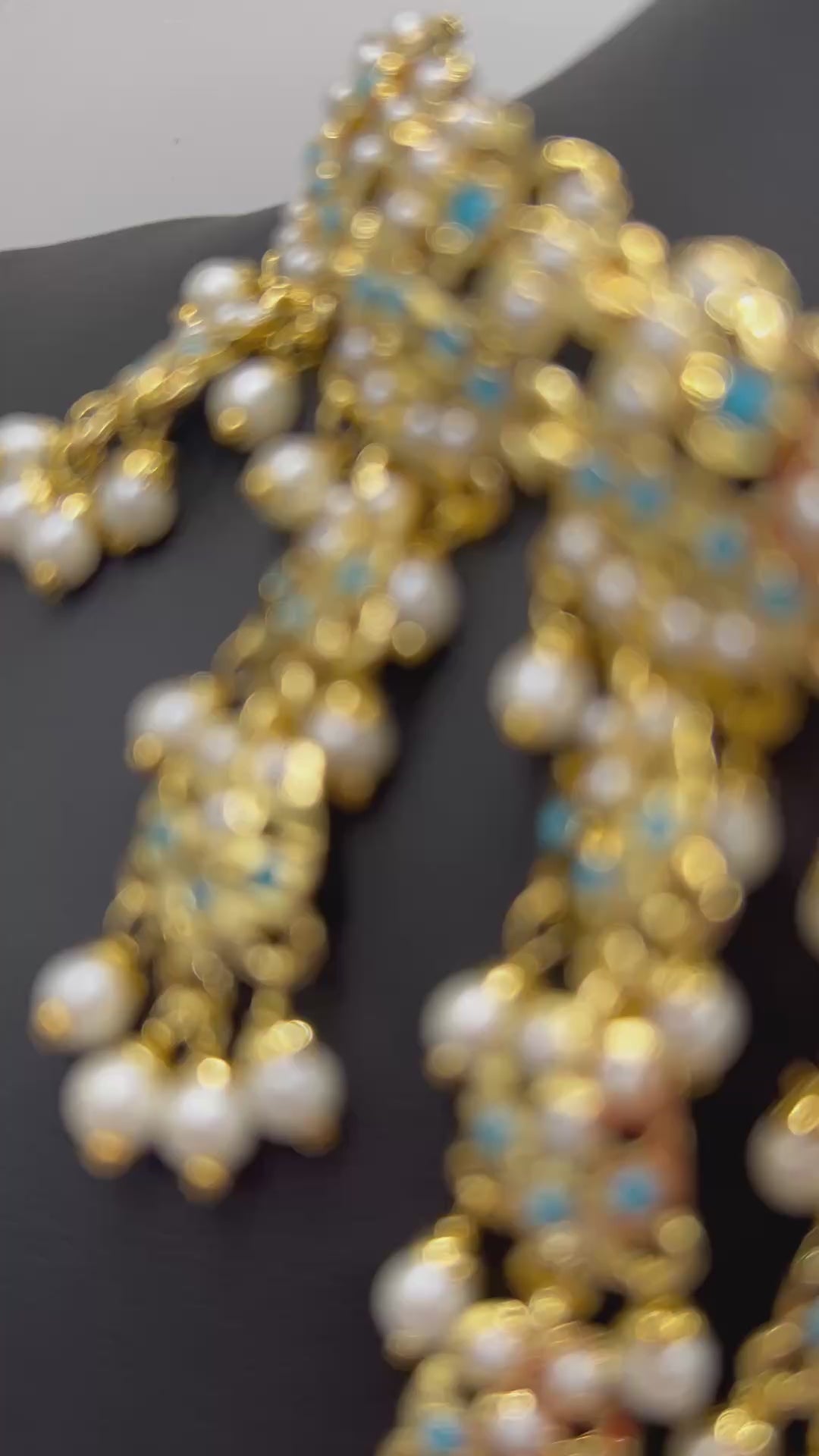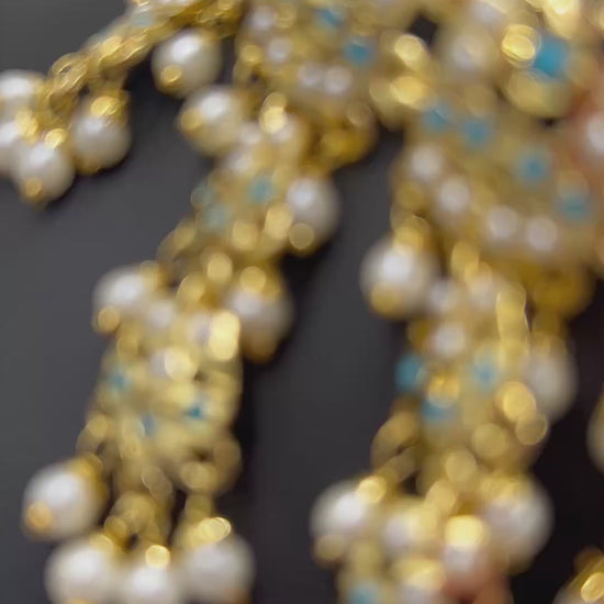 This elegant Jadau necklace, with its intricate design and 1gm gold plating, is the perfect accessory for any formal or special occasion. Its traditional craftsmanship offers a touch of cultural heritage and the gold plating adds a luxurious touch. Make a statement with this stunning Jadau necklace.