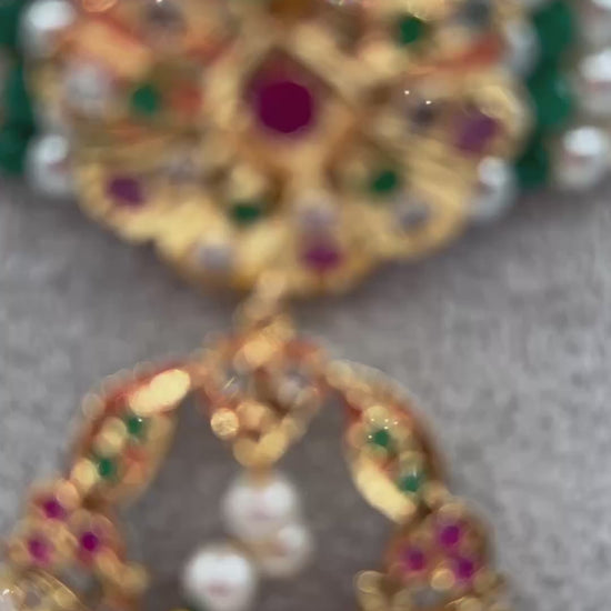 Elevate your style with our elegant Jadau necklace. This 1 gram gold plated necklace features intricately designed jadau work, adding a touch of traditional charm to any outfit. Enhance your look with this stunning piece and stand out from the crowd.