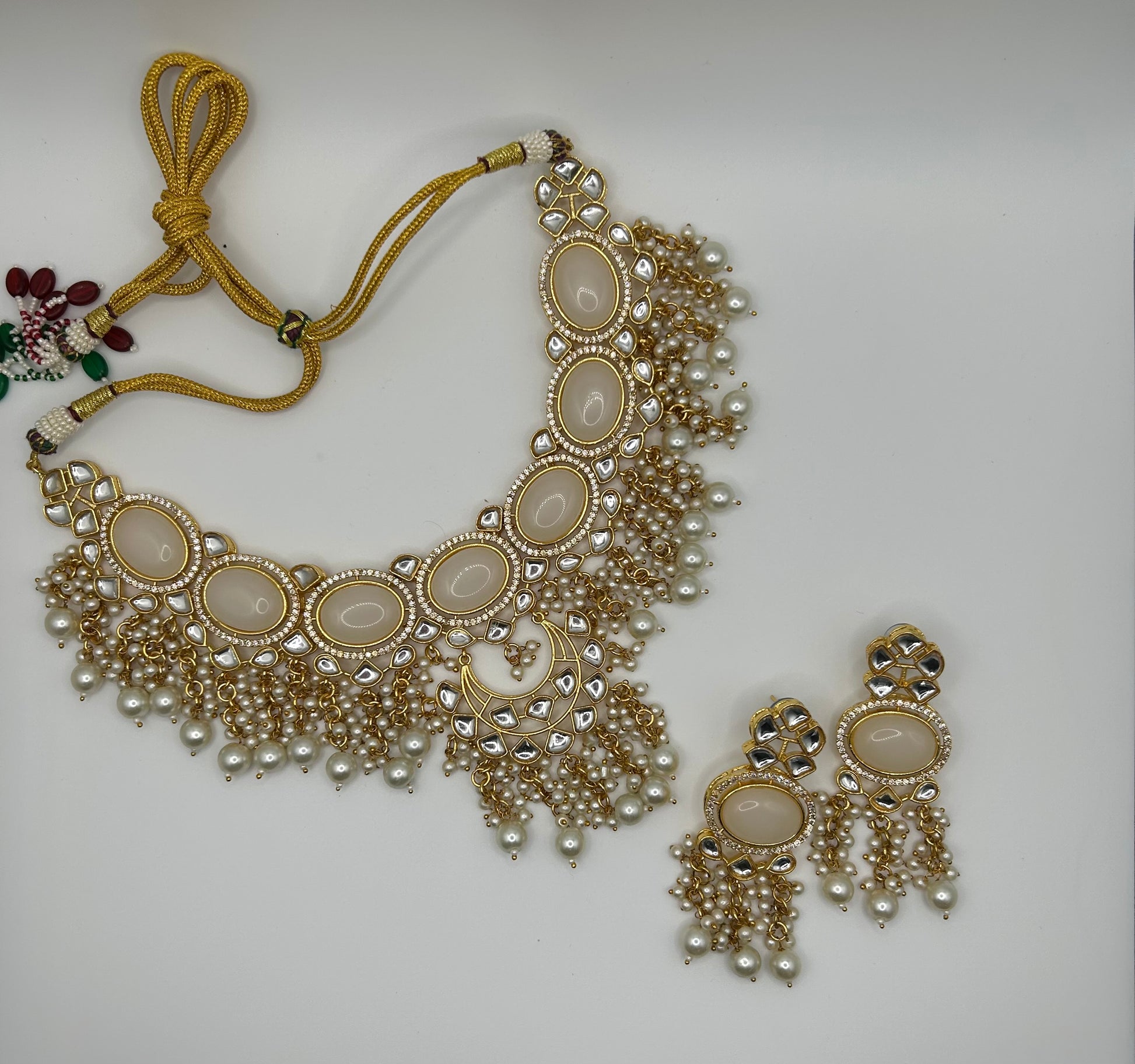 This necklace set features a premium kundan design, crafted for elegant and sophisticated occasions. With its intricate detailing and high-quality materials, it adds a touch of luxury to any outfit. Elevate your style and make a statement with this stunning necklace set.
