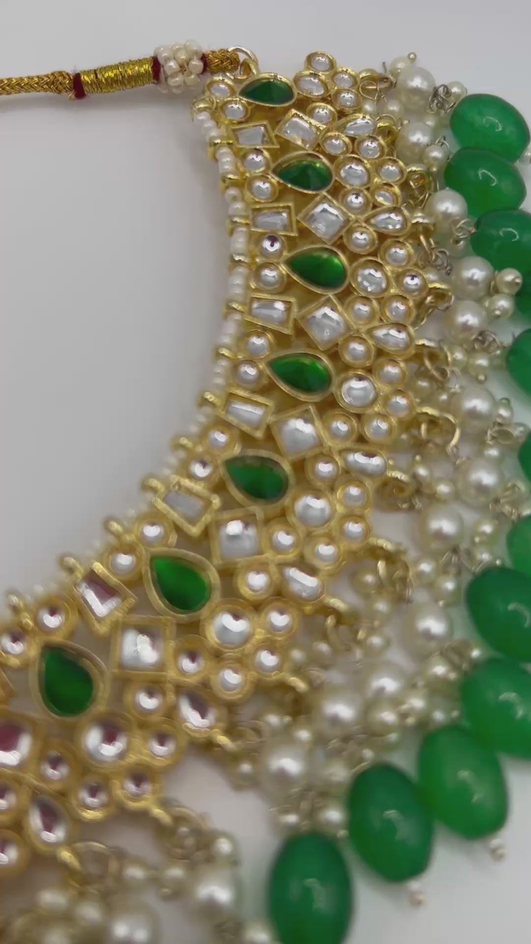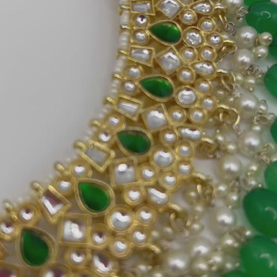 Add a touch of elegance to your outfit with this beautiful Kundan necklace set. Handcrafted with exquisite Kundan stones, this set is perfect for any special occasion. Elevate your style and make a statement with this sophisticated and timeless piece.
