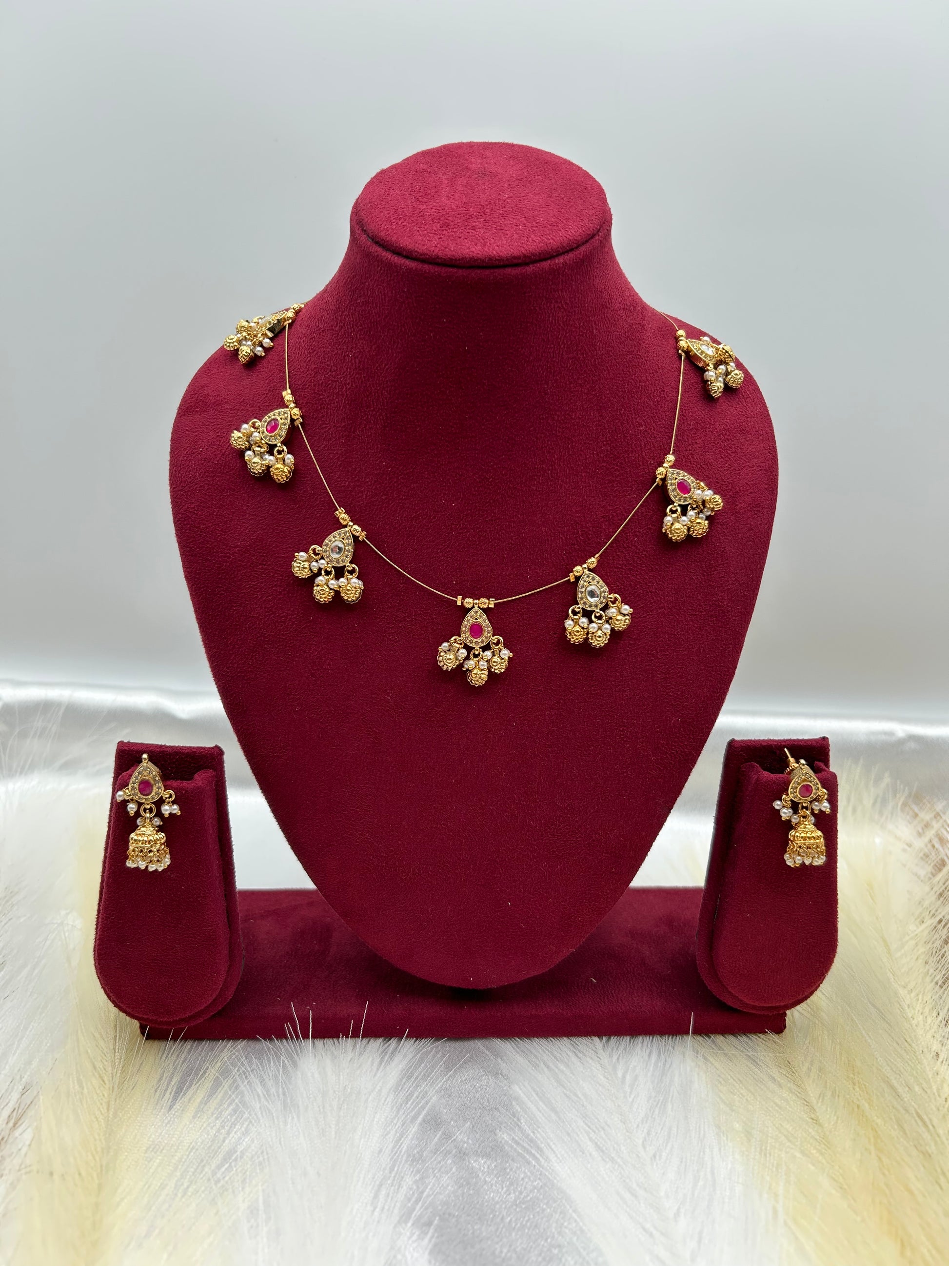 This elegant thin chain necklace is adorned with delicate pachi kundan, adding a touch of sophistication to any outfit. Made with high-quality materials, this necklace is both durable and stylish. Perfect for any occasion, it will elevate your look and make you stand out with its unique design.